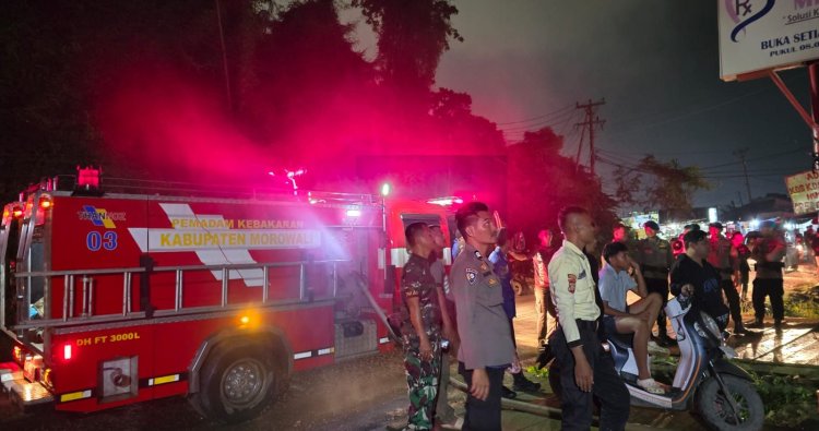 MOROWALI, Sulawesi Tengah— Respons cepat ditunjukkan Babinsa Koramil 1311-09/Bahodopi Serka Basri bersama Bhabinkamtibmas Polsek Bahodopi saat terjadi kebakaran rumah kos di Desa Labota, Kecamatan Bahodopi, Kabupaten Morowali, Senin malam (20/04/2026) sekitar pukul 23.15 Wita.
